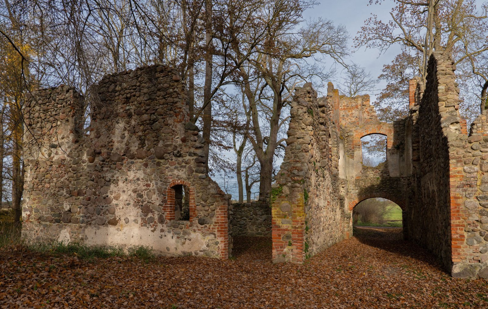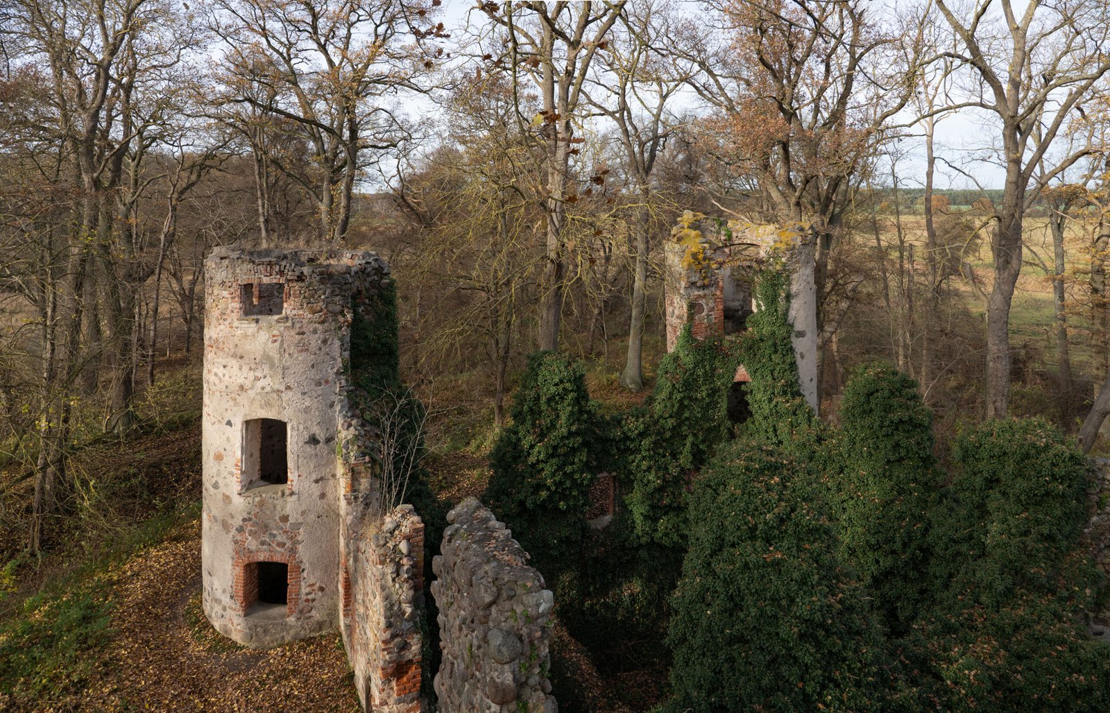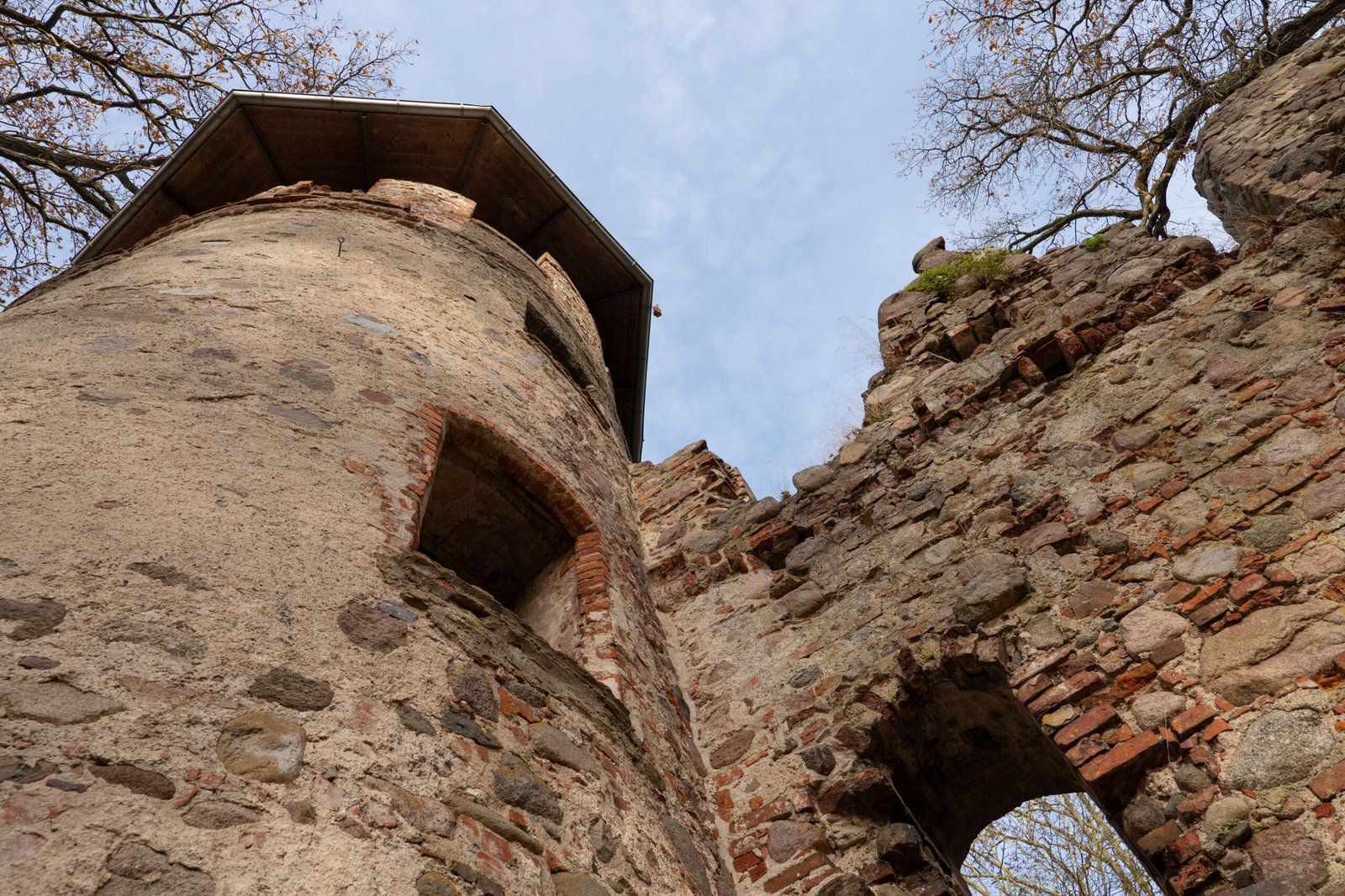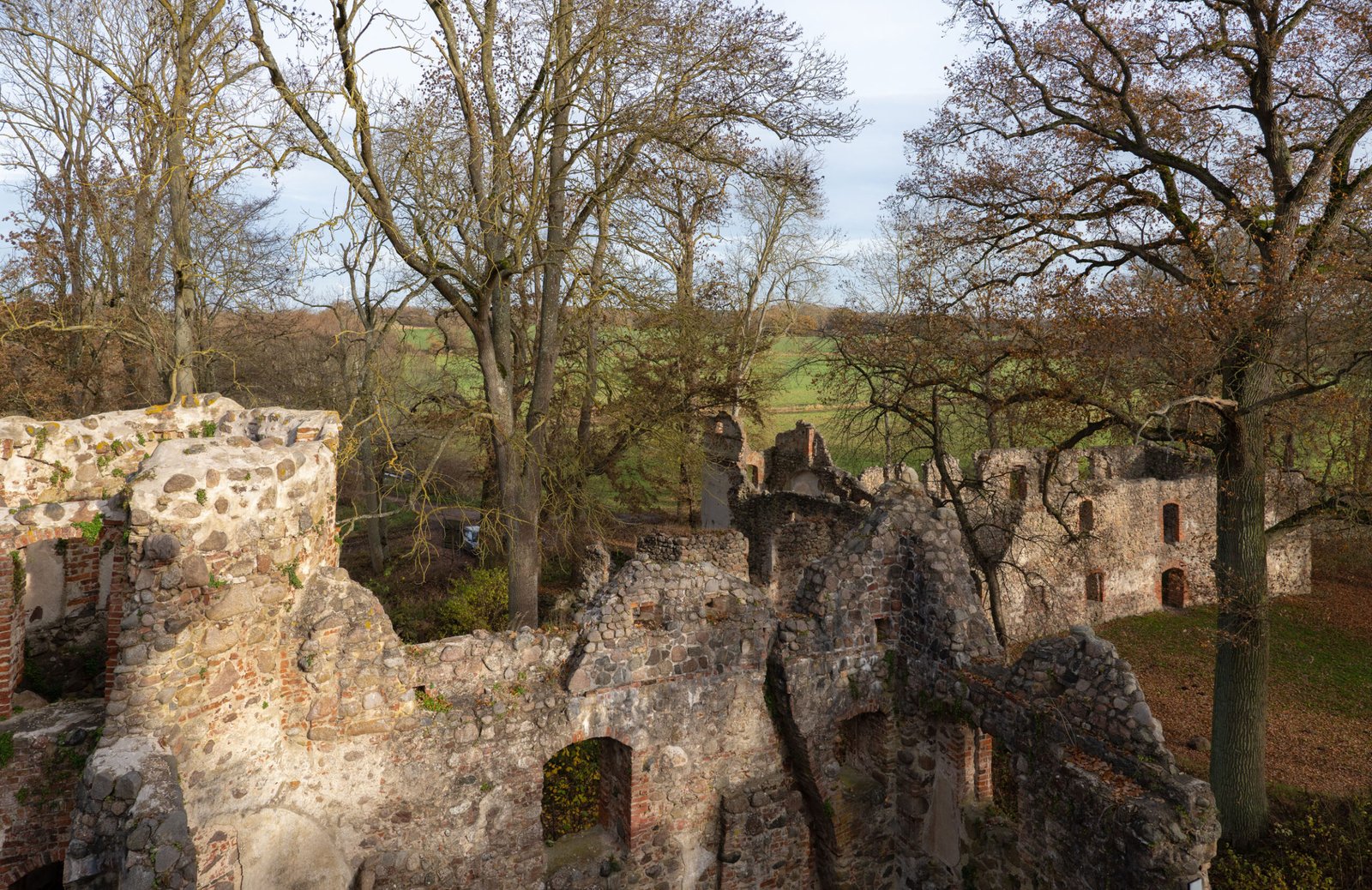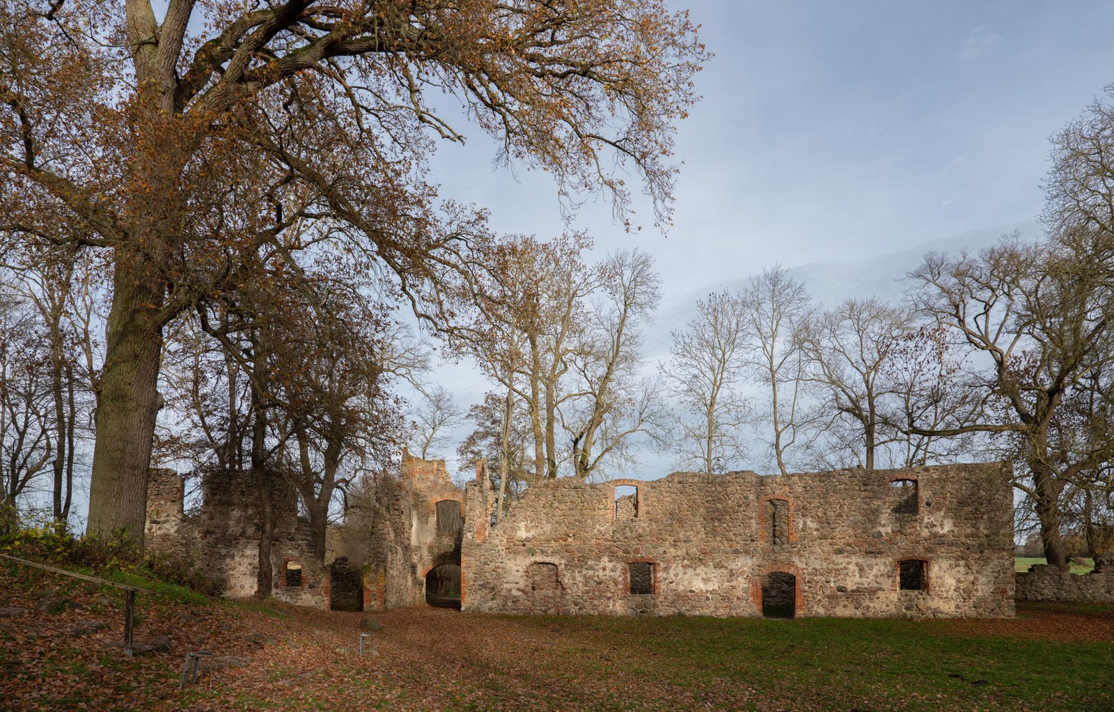 Ich bin an einem sonnigen Tag im November dort. Das meiste Laub ist schon gefallen, so dass die Burg sehr gut fotografiert werden kann. Die Festung wurde von Ulrich II. von Schwerin in den Jahren 1576 bis 1579 erbaut. In historischen Aufzeichnungen wurde die Burg später selten erwähnt. Offenbar war sie nicht Mittelpunkt irgendwelcher kriegerischer Auseinandersetzungen. Später wurde sie von Ulrichs Sohn Ernst von Schwerin übernommen.